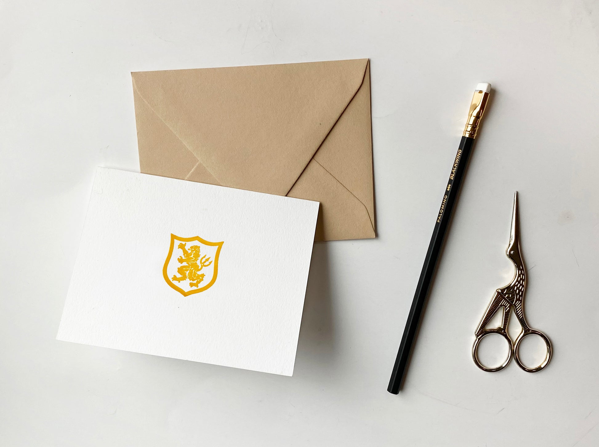 Note card size when folded is 4.5" x 5.5" and comes with a euro-flap (pointed) matte cream or kraft envelope. Each card is letterpressed by hand with your ink color of choice in our studio. As always, well-designed and well-crafted.