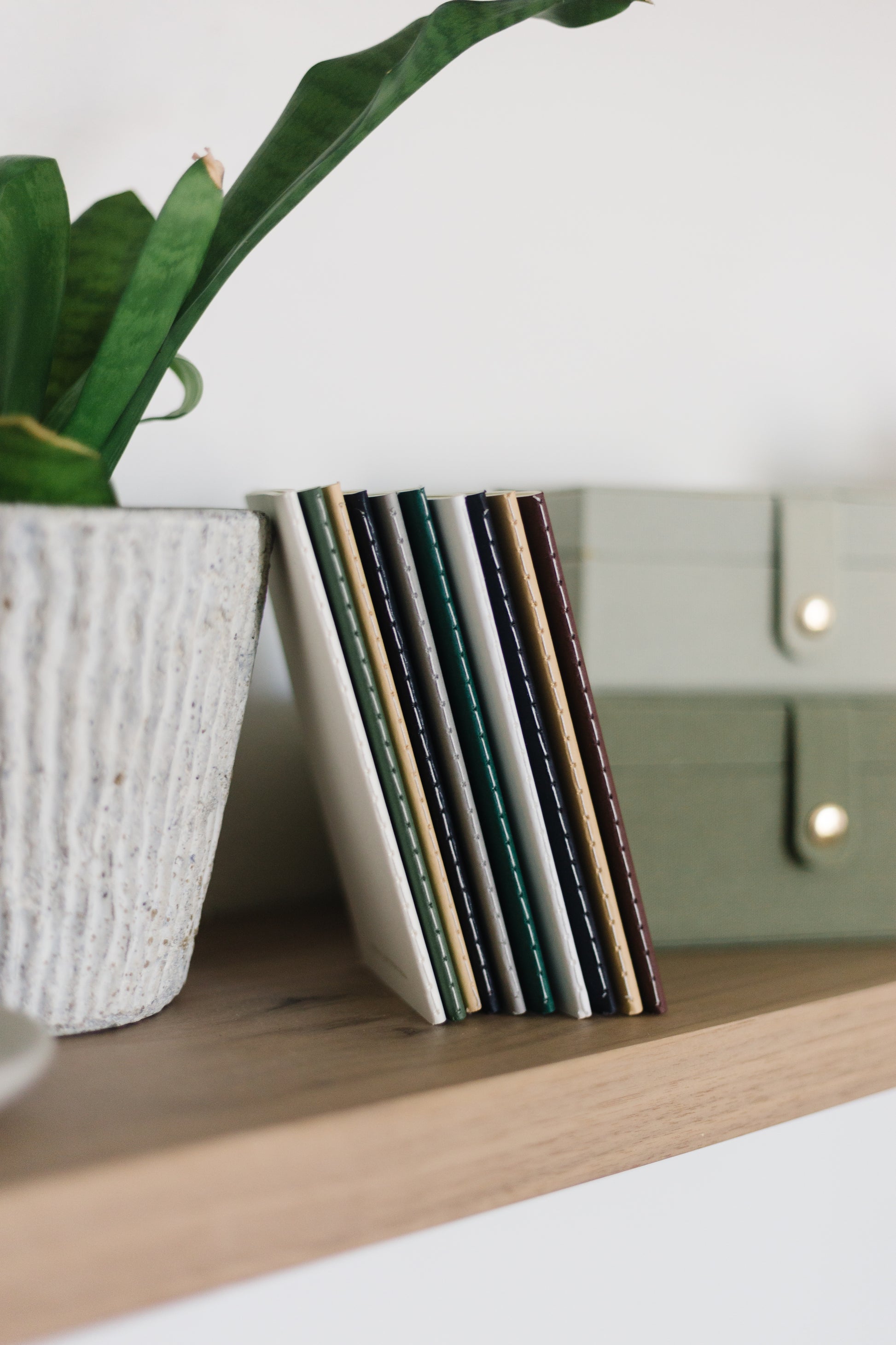 A personalized notebook for you or a friend to stay organized in style. Adorned with the words, initials, monogram, name, date, or other short phrase in your foil press color of choice, these medium saddle stitch notepads add the perfect custom touch. Each notebook comes with the same letters foil pressed / embossed on the cover in a timeless serif font.