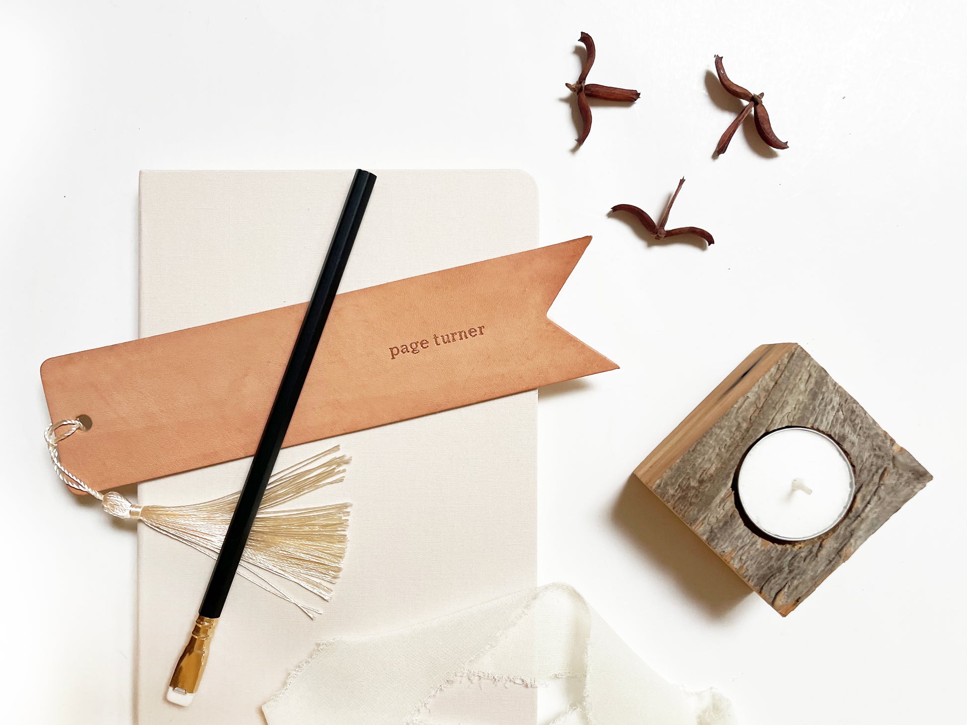 A personalized bookmark for you or a friend! Mark your page in a favorite book in style with these sweet leather bookmarks, custom pressed with your foil embossed text.