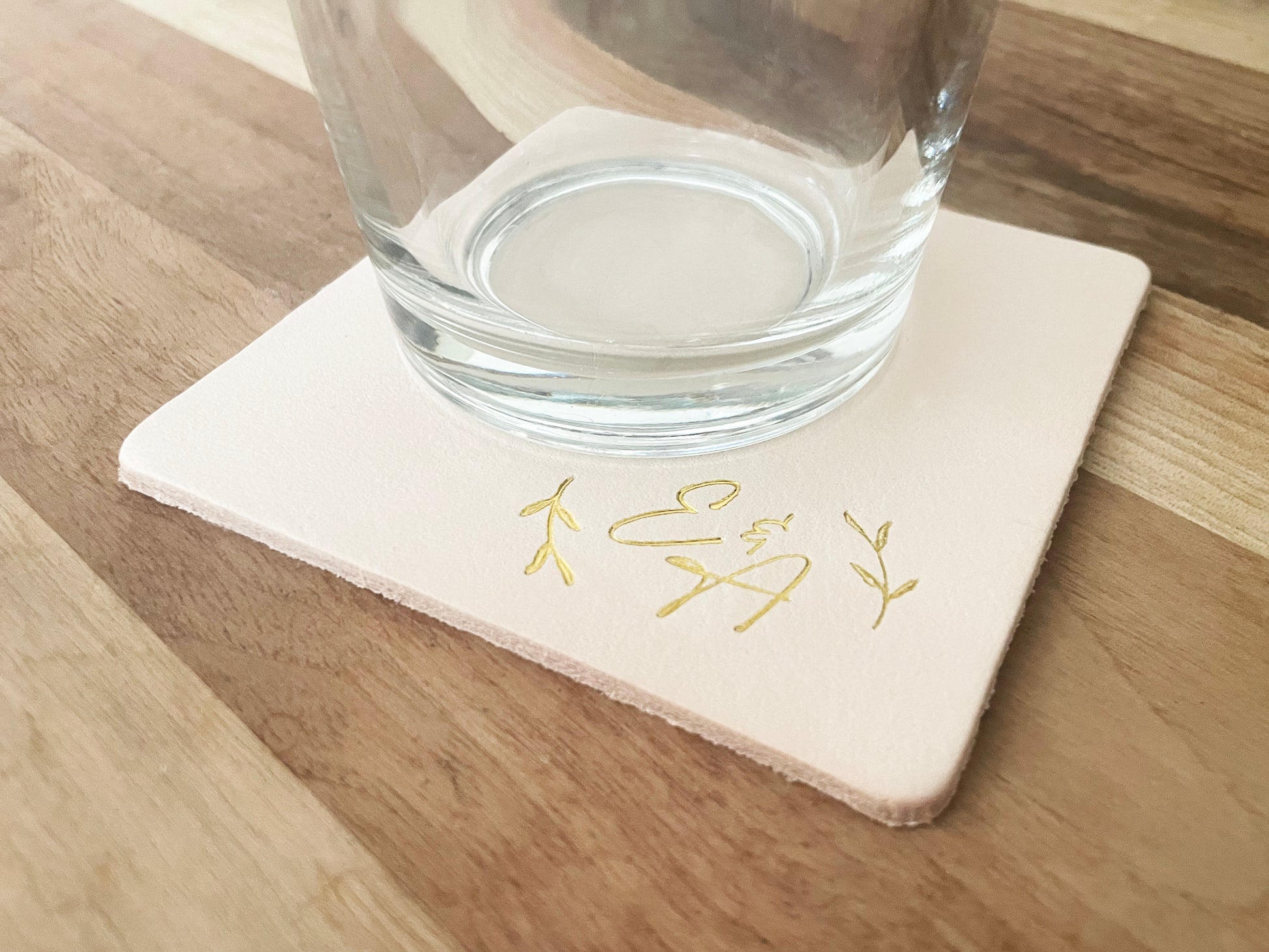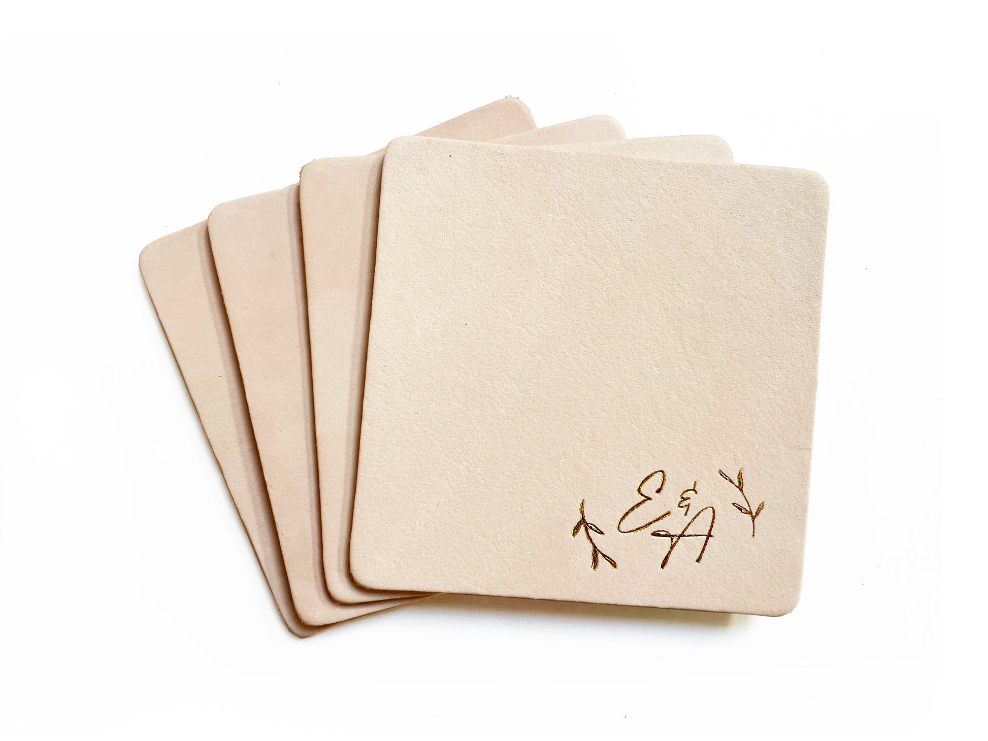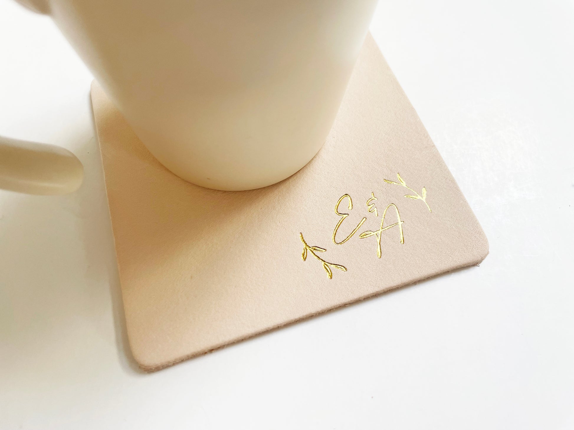 Set your drink down in style with these sweet leather coasters, foil embossed with your own custom logo in the foil color of your choice. Each coaster comes with the same logo, artwork, typography, or other design foil pressed on the bottom right corner.