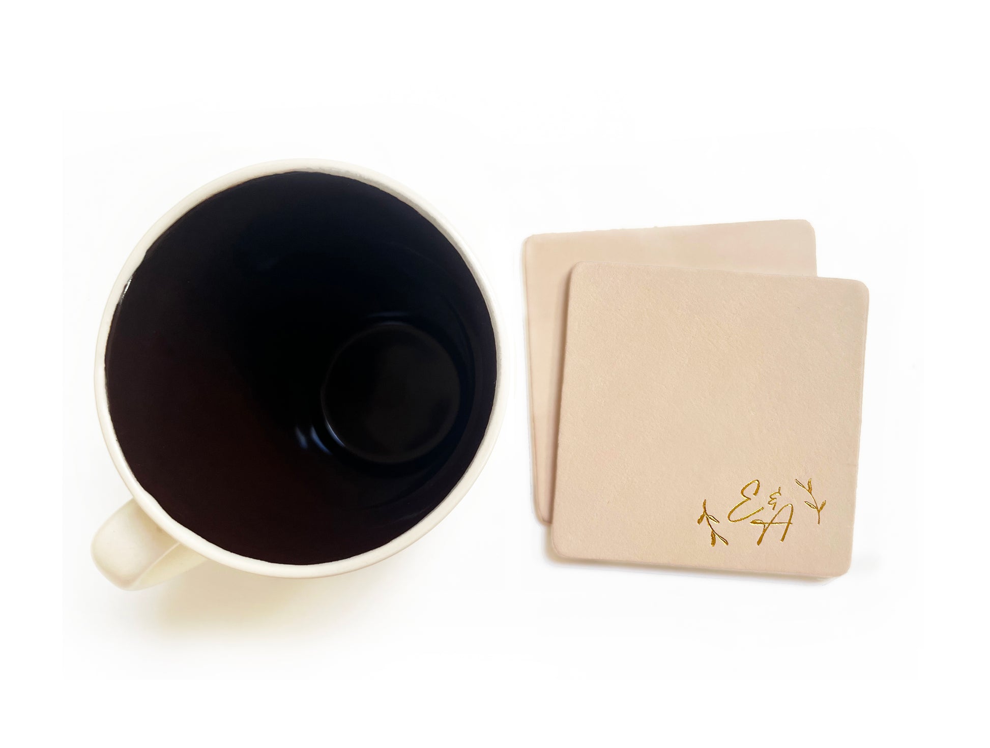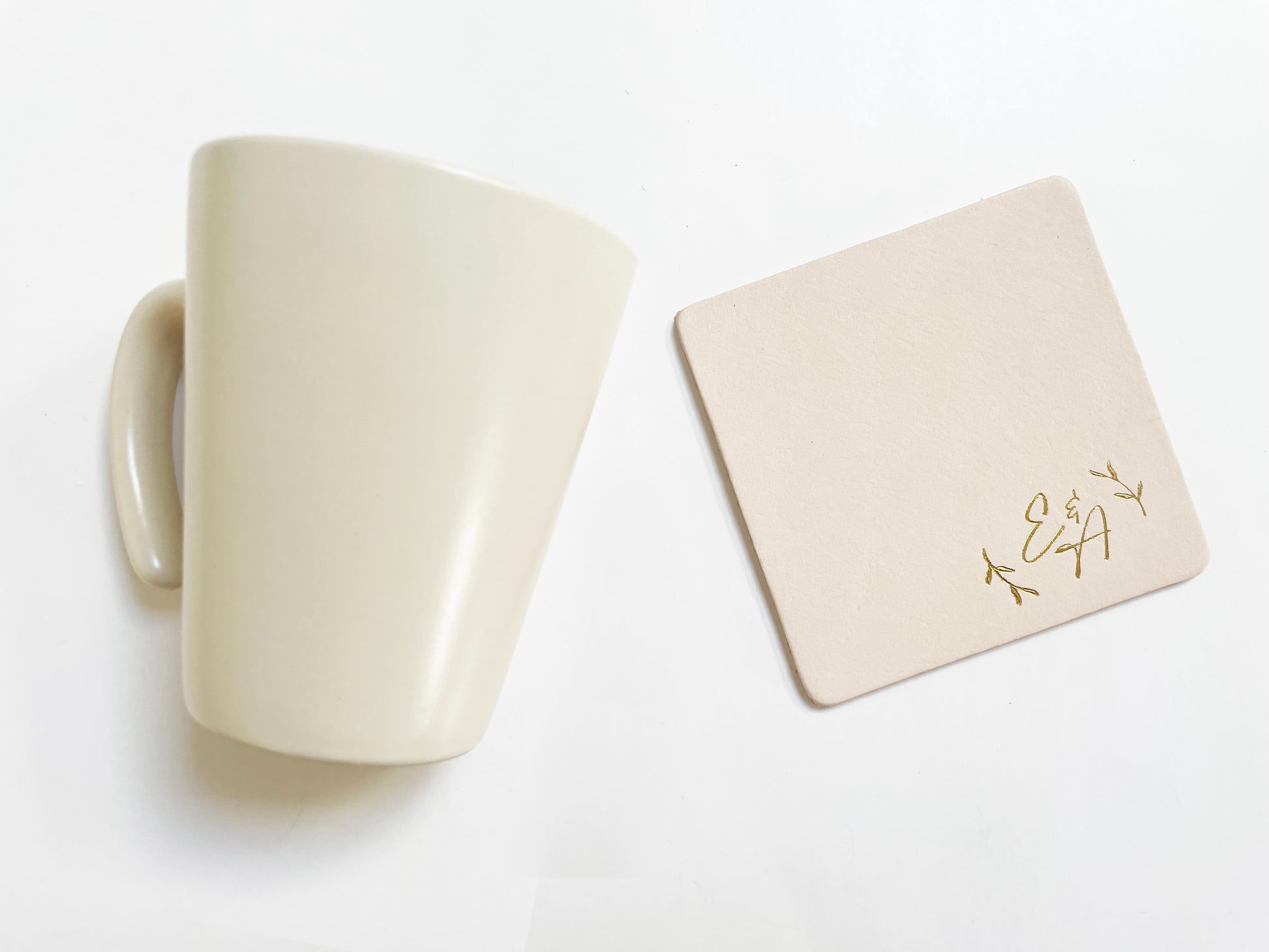 CUSTOMIZATION: Please send me an email at jessica@studioportmanteau.com when you place your order with the image you would like foil embossed on the coaster. The images need to be in just one tone, with no grayscale or in between colors, to create a foil press die that will work well. We prefer to work with vector files for the cleanest results (ai, pdf, eps) but can also work from high-res png's. I will send you a proof of how your logo will look on the coaster for your approval. Once your proof is approved, please allow for 2 weeks production time plus shipping for this custom logo item.