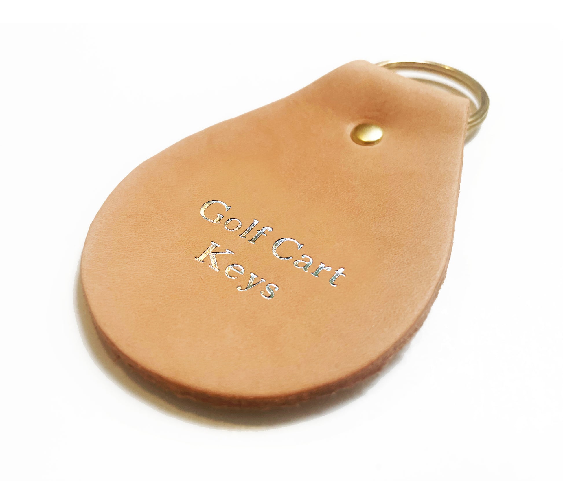 A handsome, rugged customized leather keychain for you or a friend! Never lose your favorite keys with this sturdy, personalized leather keychain, embossed to order with your custom text in your choice of foil color. The supple, tan leather gets softer every day with use and the hardware is made to hold up to rugged lifestyles.