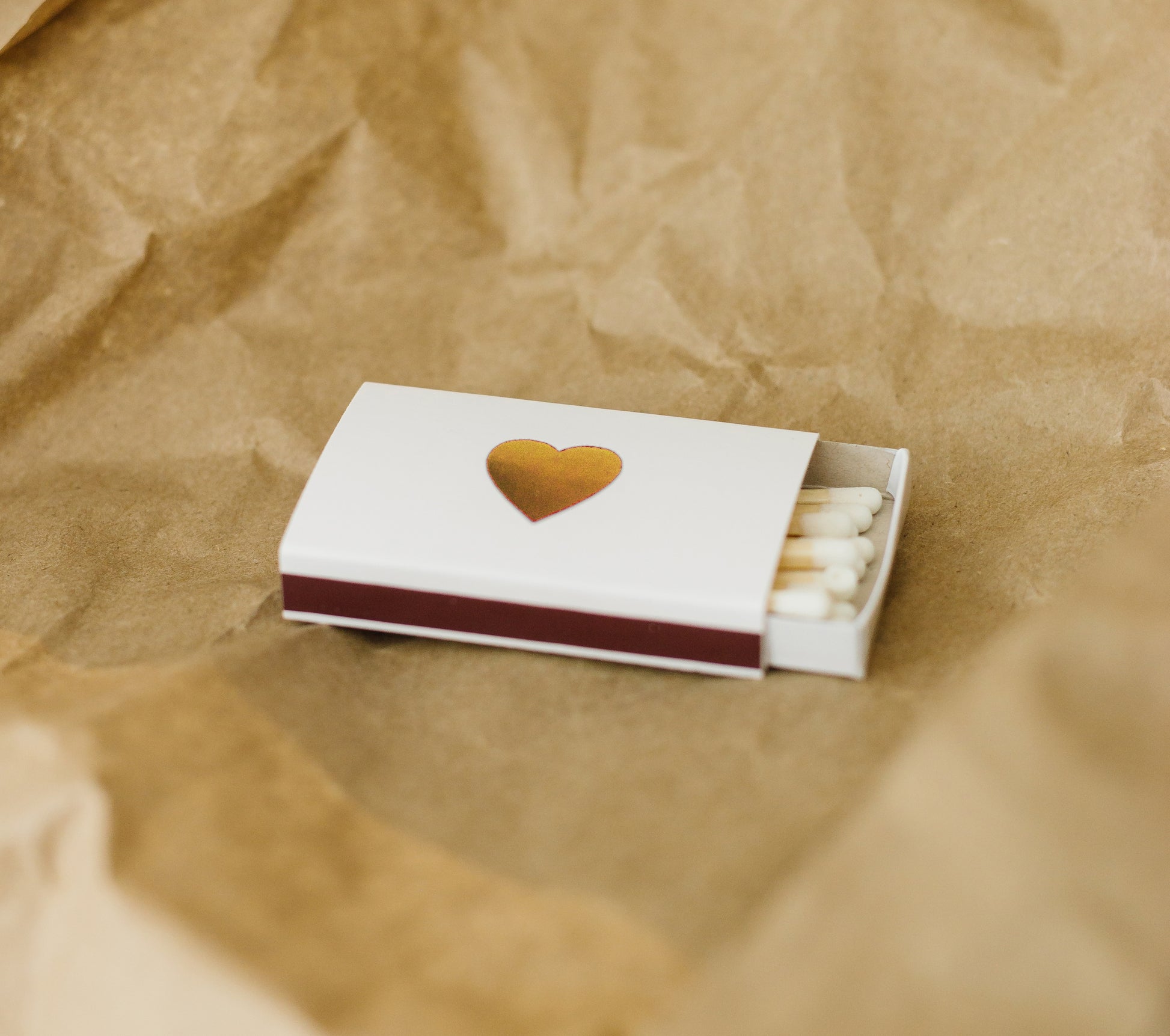 Light a heartfelt spark with this foil-embossed classic heart matchbox!