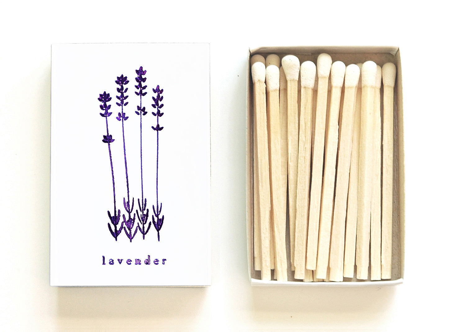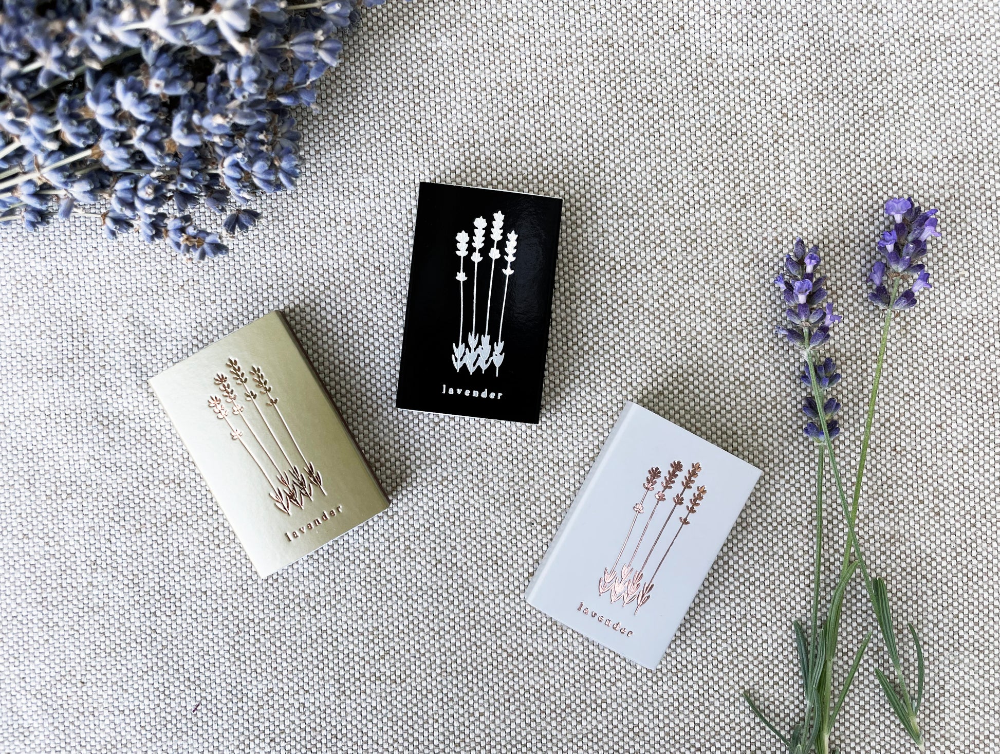 Adorned with a miniature botanical illustration of lavender sprigs on the outer lid in your choice of foil press color on a black, white, or gold box, this tiny matchbox adds the perfect touch of fresh summer sun. This match enclosure makes a wonderful gift for gardeners, farmers, chefs, foodies, florists, nature lovers, or those who simply love the smell of lavender, be it for Valentine's Day, Mother's Day, a birthday, to say thank you, or just to let someone know you're thinking of them.