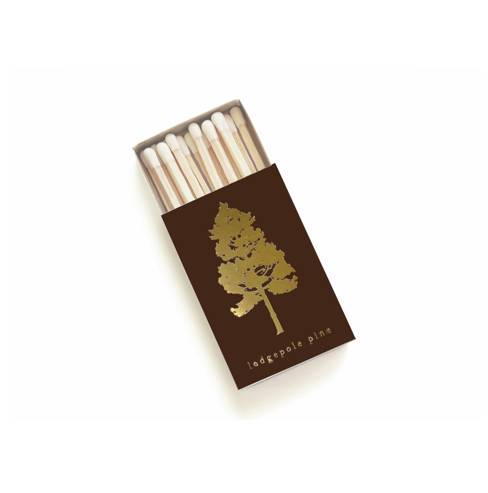 Adorned with a miniature botanical illustration of a lodgepole pine tree in gold foil on a dark chocolate brown box, this tiny matchbox adds the perfect "get lost in the woods" touch. This match enclosure makes a great gift for camping adventures, hikers, backpackers, trekkers, camper van life enthusiasts, graduates, solstice celebrations, or for anyone who loves the forest.