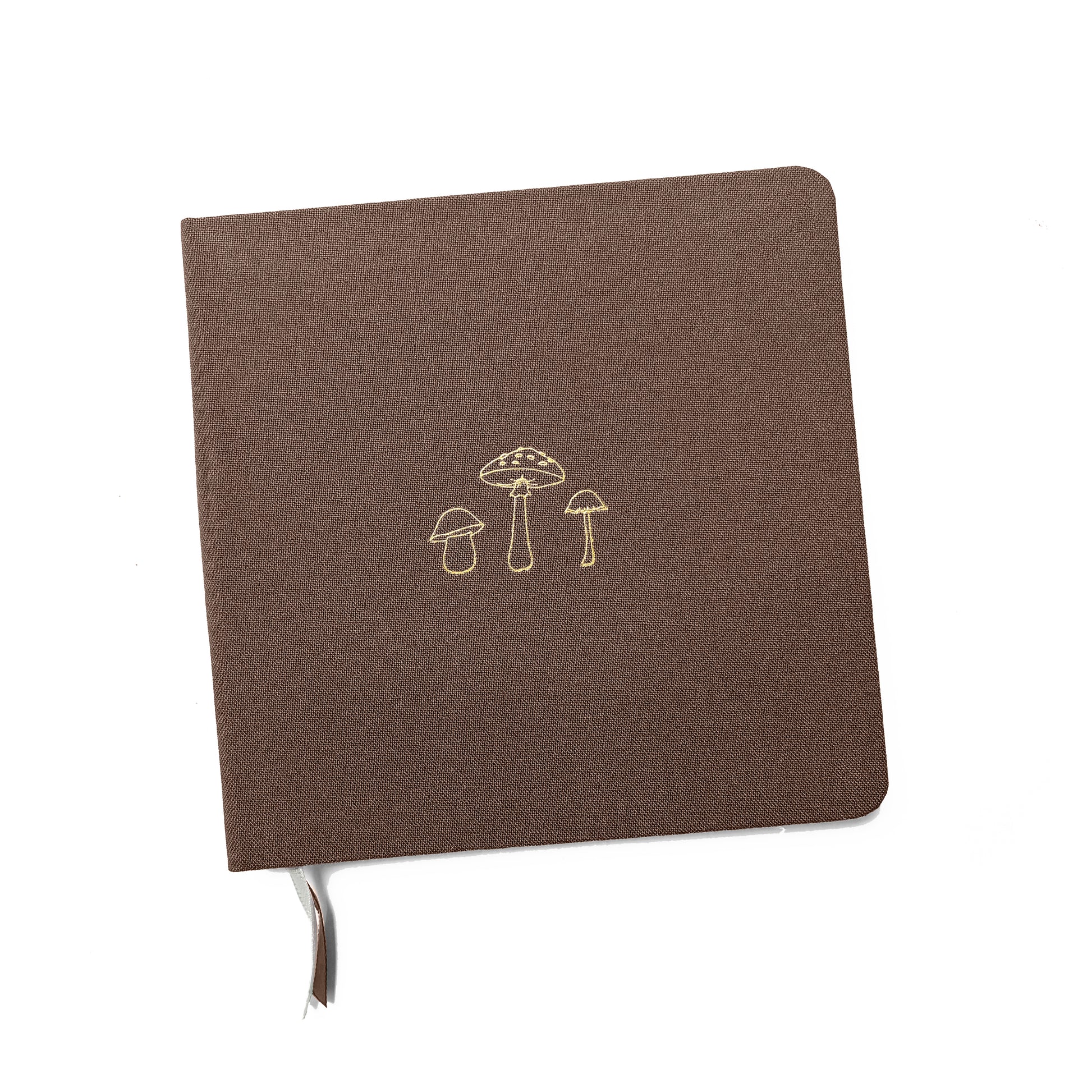 Go on a foraging spree with one of these classic square linen notebooks, embossed with our sweet mushroom trio design, in your choice of foil press color on an earthy rust brown, deep olive green, sandy caramel beige, navy blue, chocolate brown, or honey gold linen bookcloth bound hardcover.