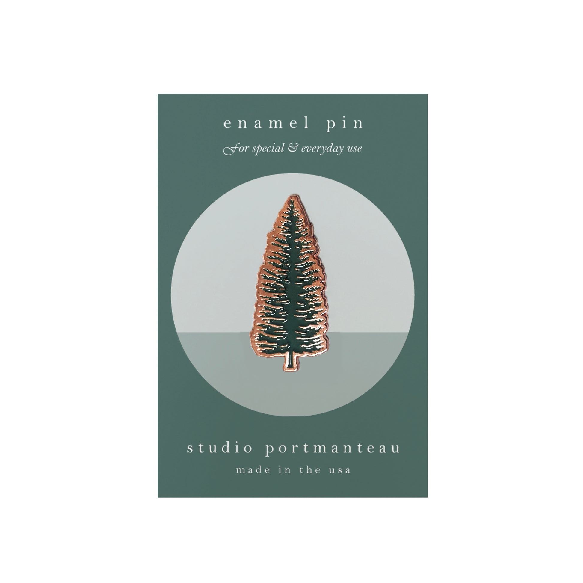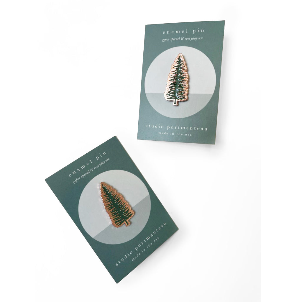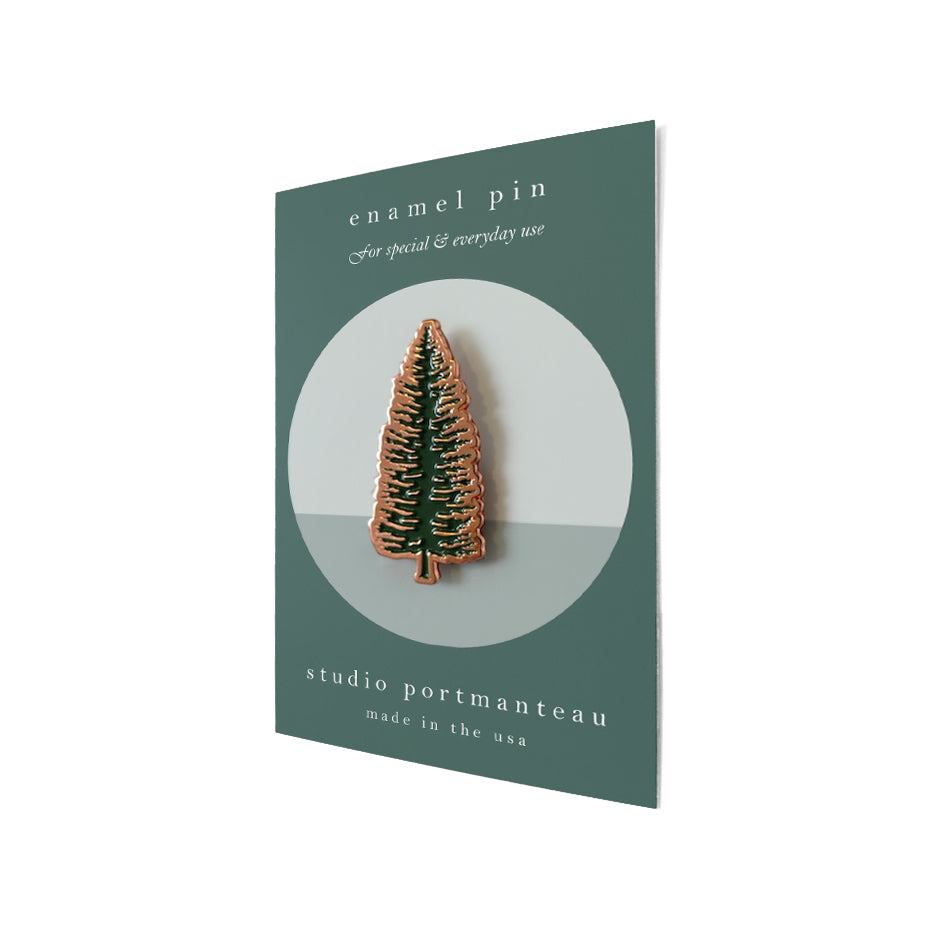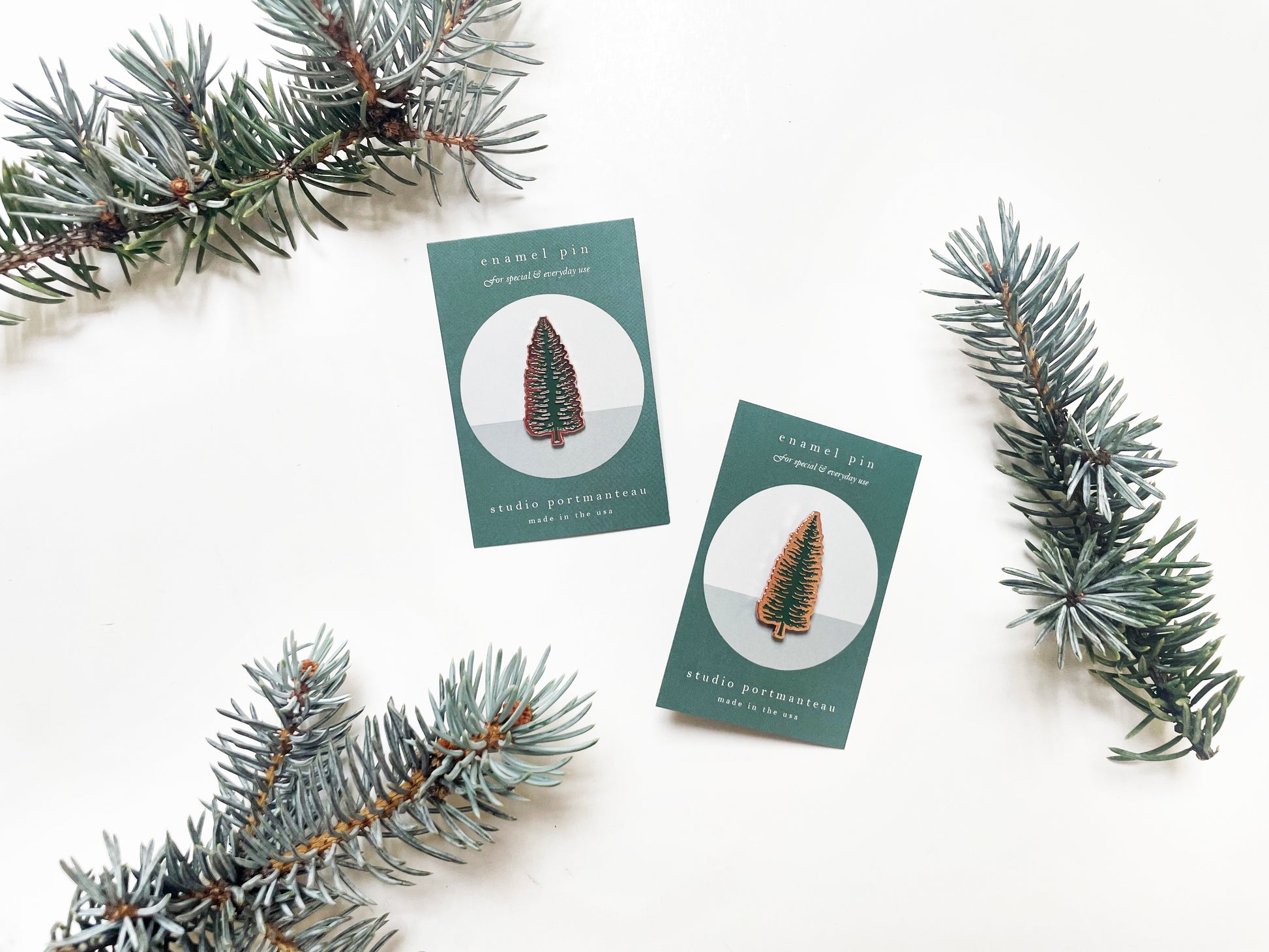 Made from copper-plated zinc with gorgeous evergreen-colored soft enamel infill in the shape of a miniature botanical illustration of a noble fir tree, this tiny pin adds the perfect woodland touch.