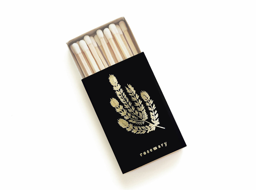 Adorned with a miniature botanical illustration of a rosemary branch on the outer lid in your choice of foil press color on a black, white, or gold box, this tiny matchbox adds the perfect herbal touch. This lovely match enclosure makes a great gift for a foodie, gardener, chef, gourmet cook, florist, botanist, budding green thumb, apartment dweller, or lover of the countryside.