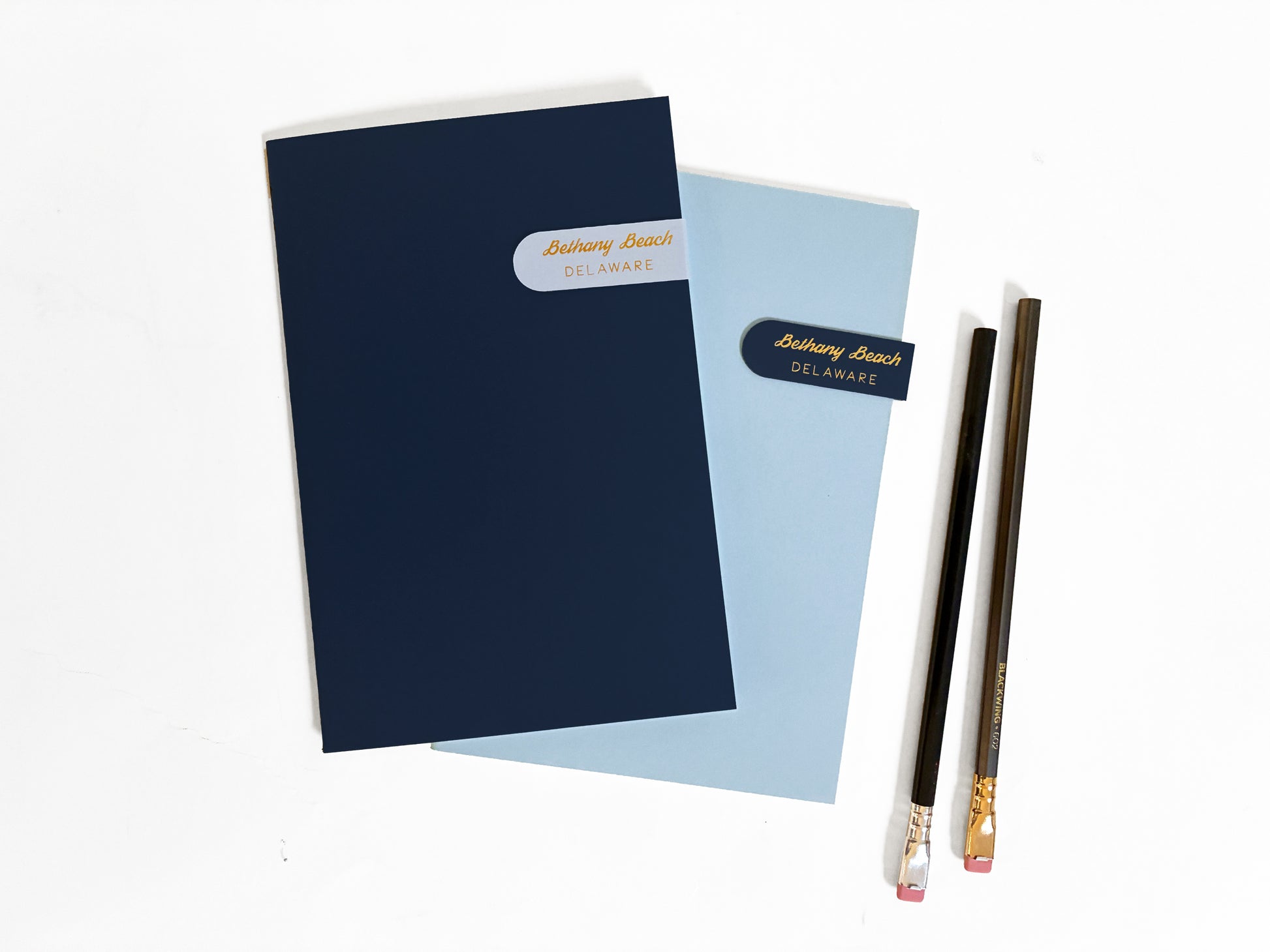 Mark your page in a favorite book in style with these custom logo magnetic bookmarks, custom pressed with your own logo, design, typography, or other artwork in gold foil on a background color of your choice.